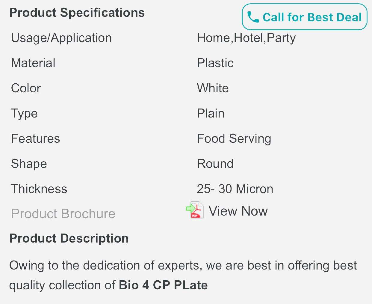 White Plastic Bio 4 CP Plate